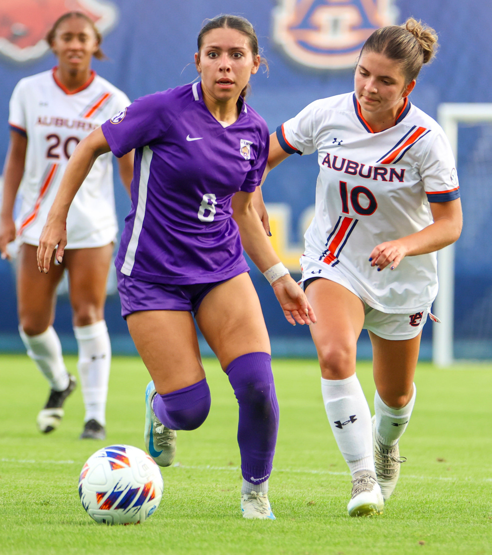 The LSU Soccer team (9-7-3, 4-5-2 SEC) won their opening match of the 2024 SEC Soccer Tournament against the six seed and No. 24 ranked Auburn Tigers (12-3-4, 4-3-4 SEC) by a score of 2-1 on Sunday afternoon in Pensacola.