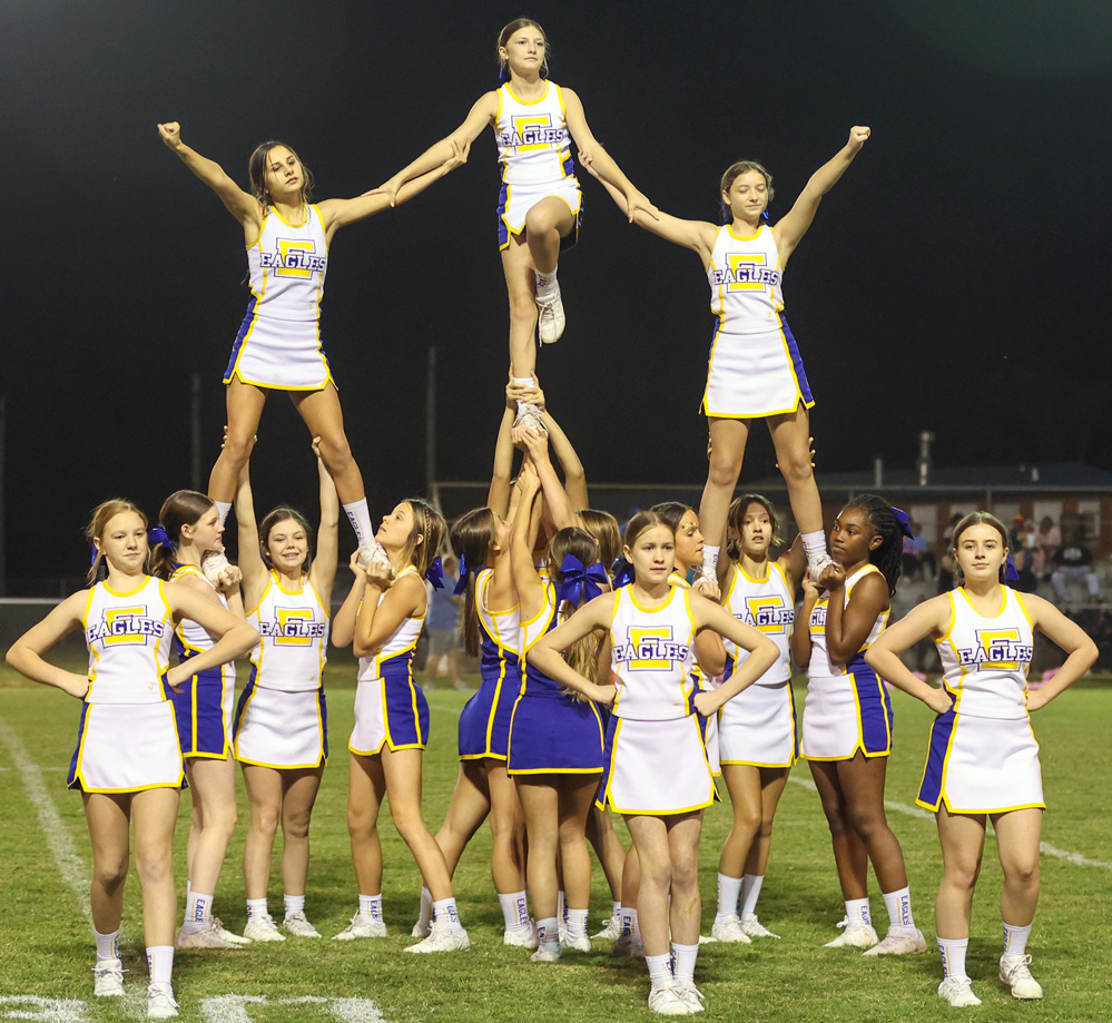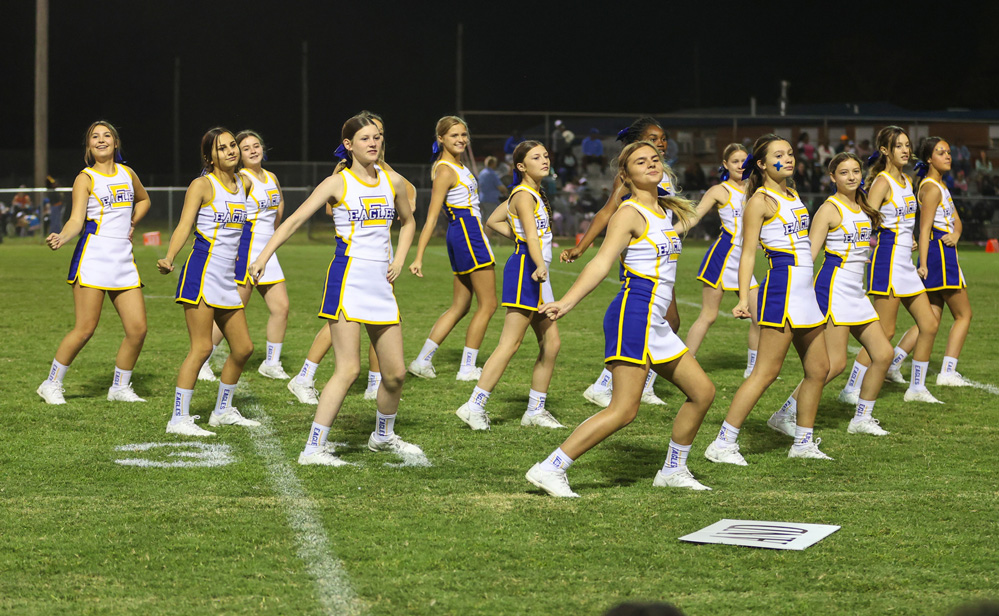 Pictured: The Ernest Ward Middle School cheerleaders perform during the school’s homecoming game on October 15. Officials say the cheerleaders ares missing $28,192.34 that was allegedly stolen by the school’s former bookkeeper. NorthEscambia.com photos, click to enlarge.