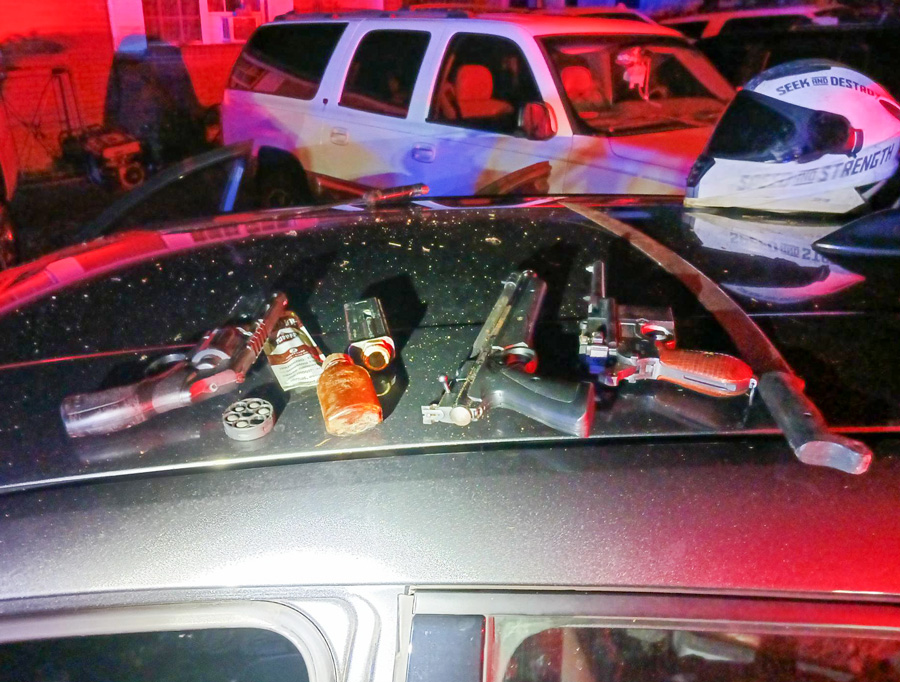 All three guns in the photo appear to be pellet guns with containers used as targets. These appear NOT to be real guns and no gun charges were filed.