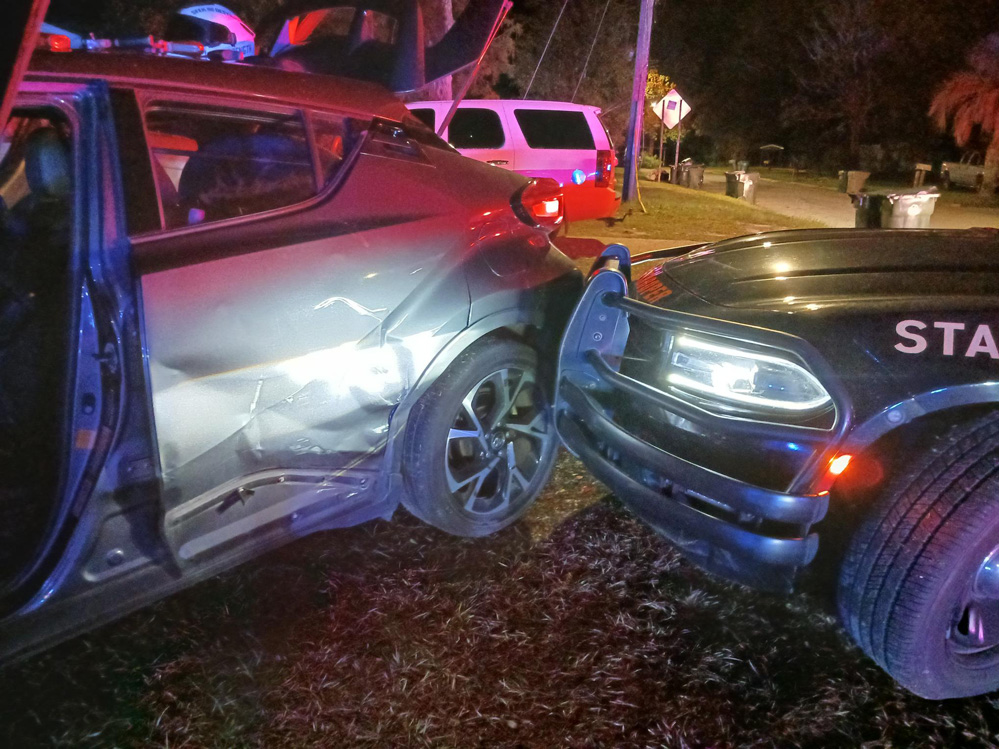An FHP trooper observed a speeding SUV on Highway 29 north of Nine Mile Road and attempted to stop the vehicle with lights and sirens. FHP said the driver fled east on 9 1/2 Mile Road and then south on Highway 95A. The pursuit ended when Dawson attempted to turn left on Flagler Drive and the trooper used intentional contact to end the chase.