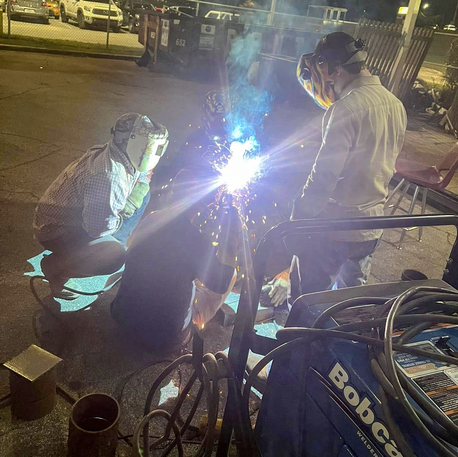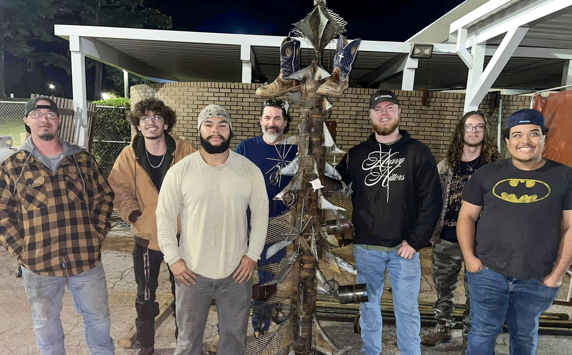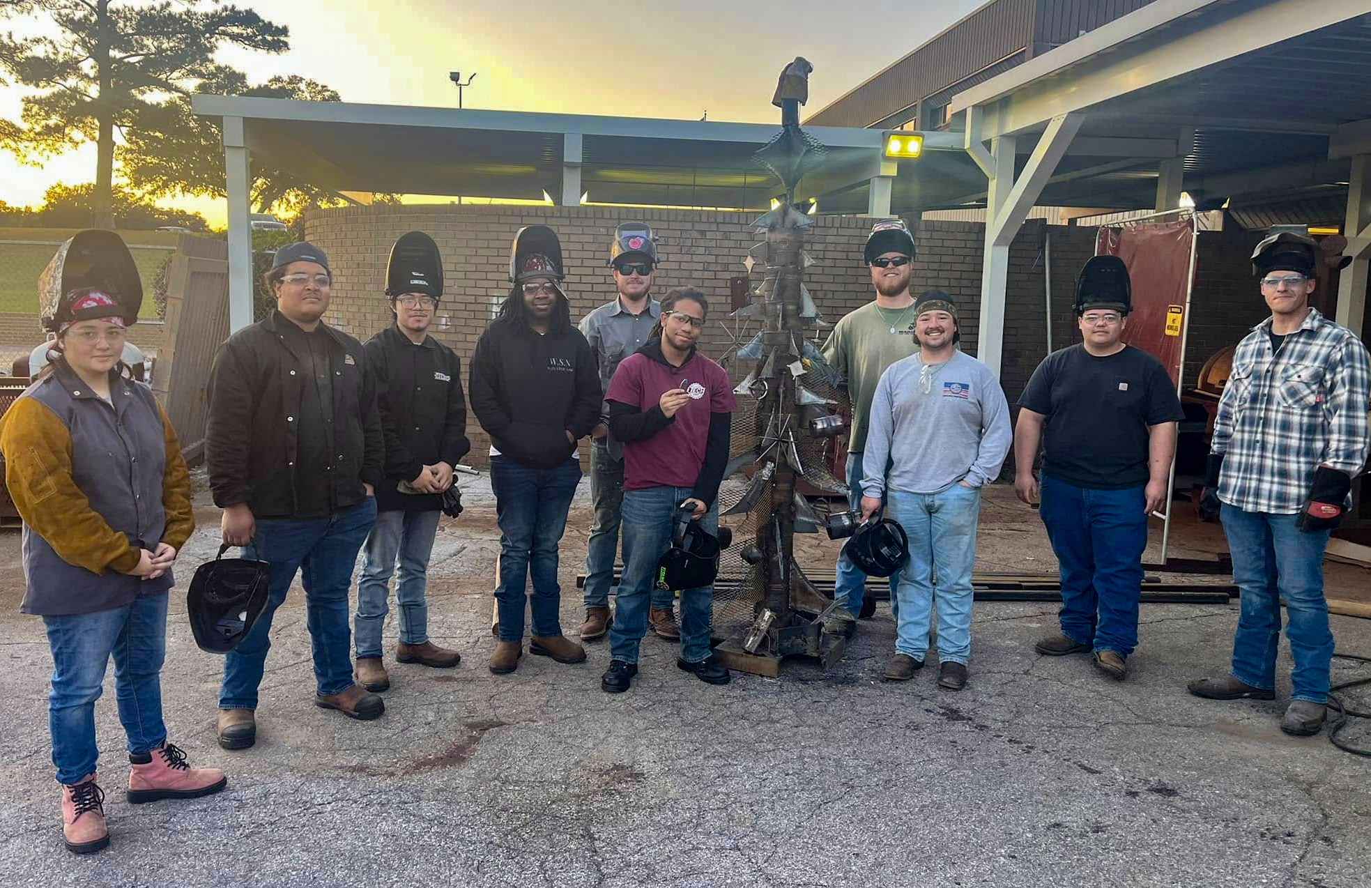 The daytime and evening welding classes worked together to make a metal Christmas tree.