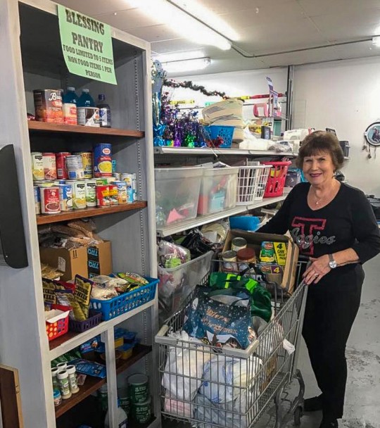 The Tate High School Alumni group recently made a donation to the community food pantry ministry at the Back to the Rack Thrift Store to benefit local families. Grace Paulchek presented the food on behalf of the alumni association Photo for NorthEscambia.com, click to enlarge.