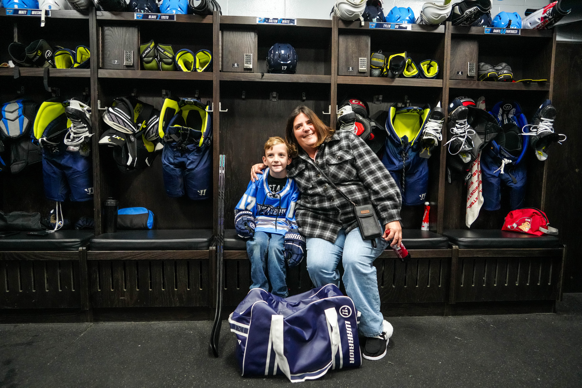 Later that night, he performed the ceremonial puck drop and watched the Ice Flyers game – his first time seeing professional hockey up close in an arena setting – with his mother, along with other family members sitting right on the glass.