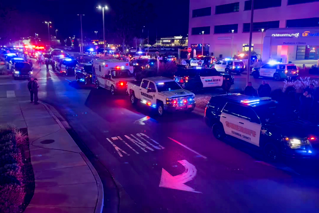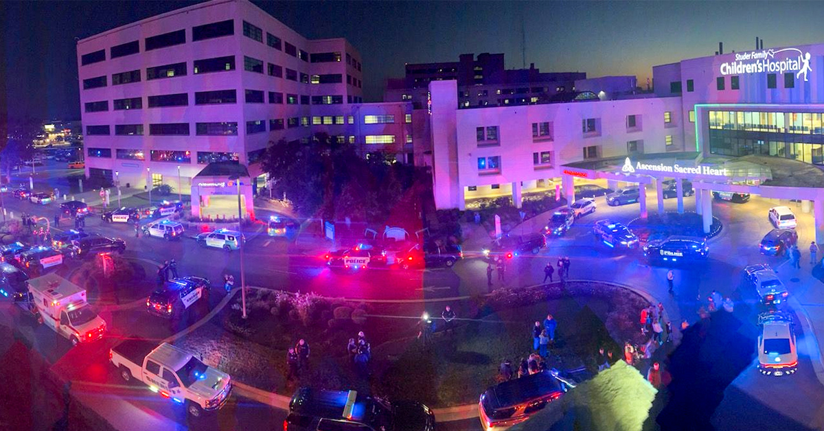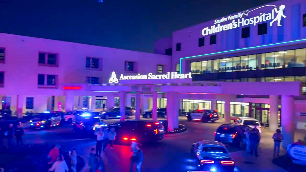 For the fifth year, local first responders gathered outside the Studer Family Children’s Hospital at Ascension Sacred Heart Christmas Eve night. Children and families inside watched as the first responders gathered outside waving, every emergency light flashing. A few minutes to say they care about the children inside and shine a little light for those who can’t be home this Christmas.