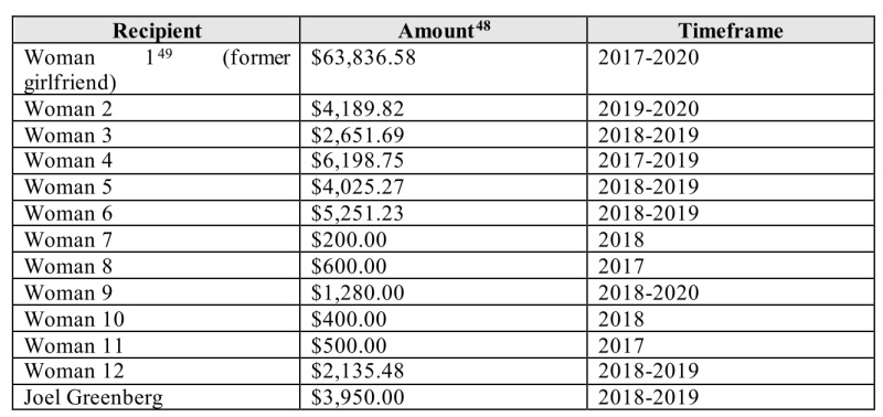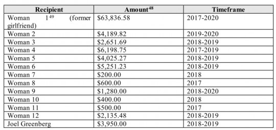 The report included the following charged the Committee said summarizes payments made by Gaetz to women and Joel Greenberg, a one-time friend of Gaetz that is now service an 11-year prison sentenced after pleading guilty in 2022 to sex trafficking.