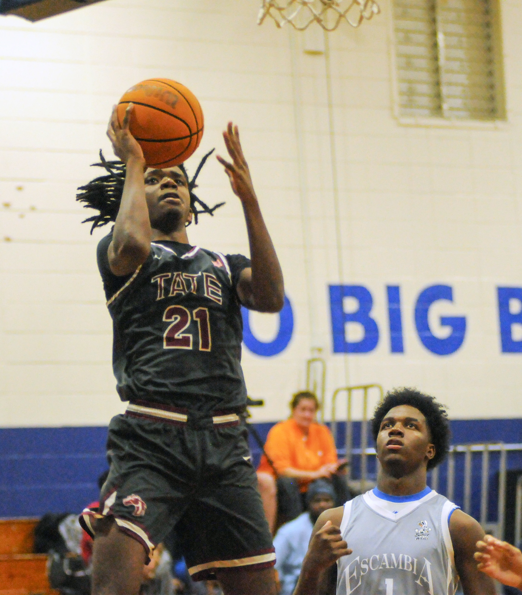The Tate varsity defeated Atmore 86-67, and the JV Aggies beat ECHS 58-25.