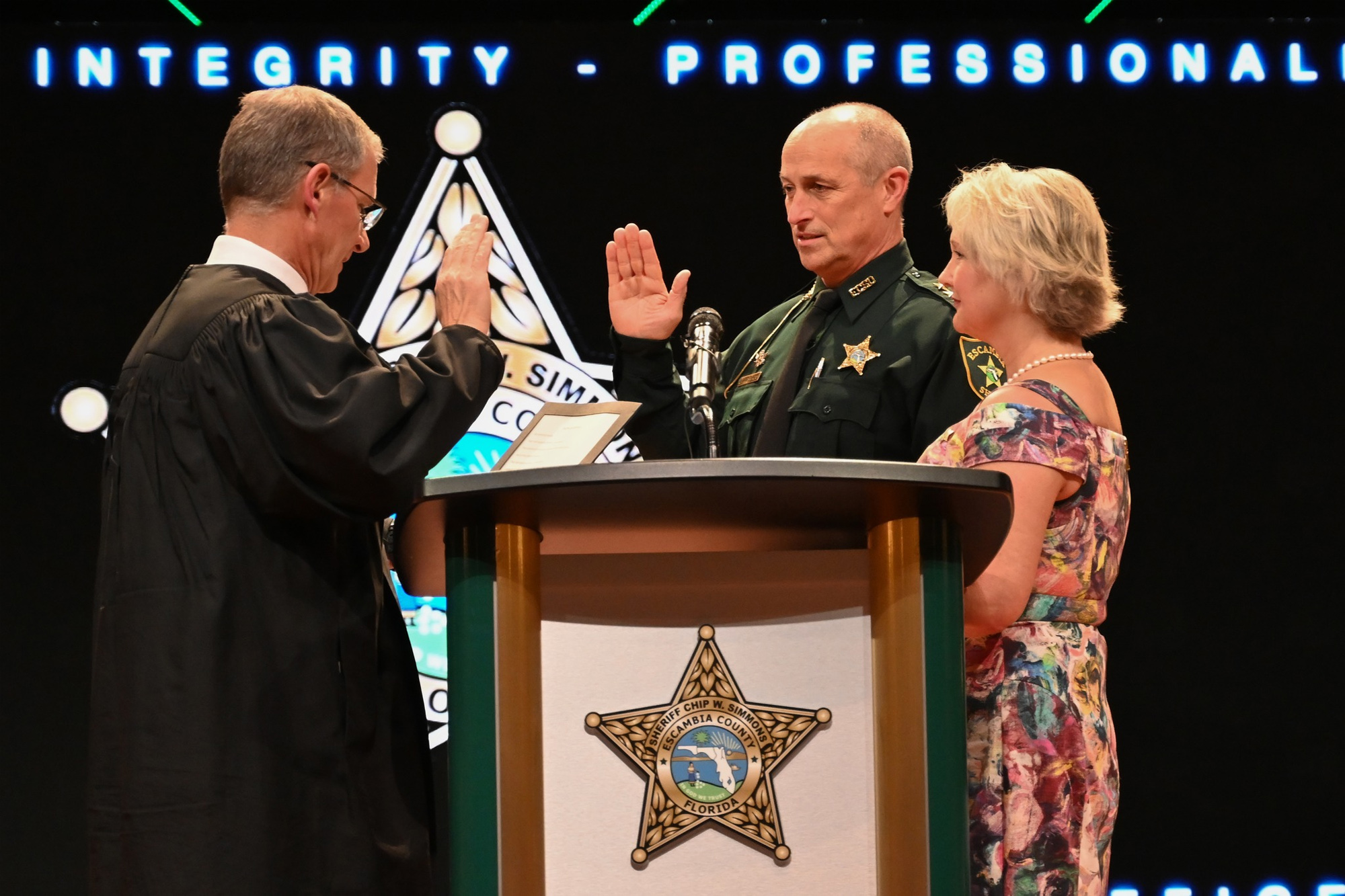 Escambia County Sheriff Chip Simmons, Property Appraiser Gary “Bubba” Peters, and Tax Collector Scott Lunsford were sworn in during separate ceremonies.