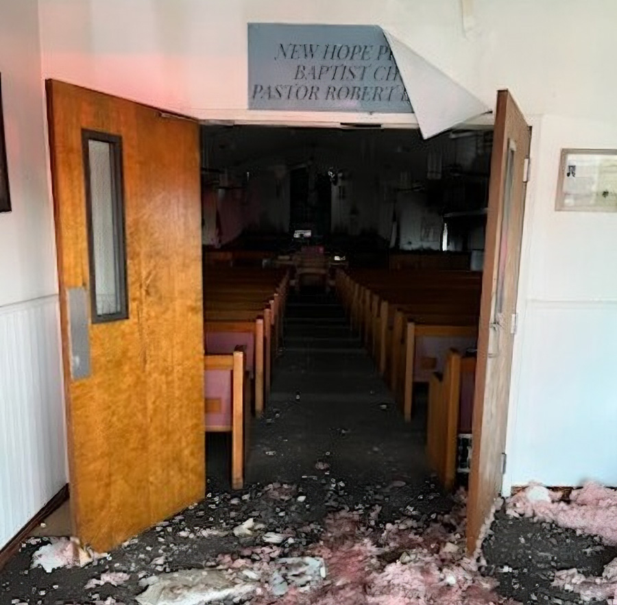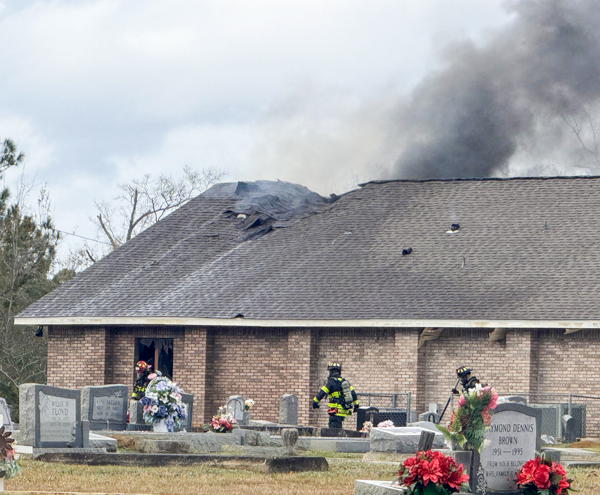 The fire was reported shortly after 3 p.m. at the New Hope Primitive Baptist Church in the 5600 block of Highway 95A, just north of Cedartown Road. Firefighters arrived to find heavy smoke showing from the rear of the single-story wood-framed church.