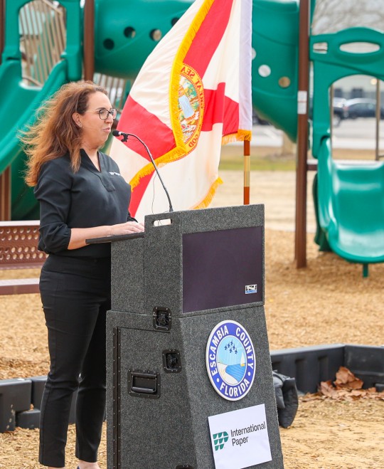 “It’s absolutely a great amenity for the community,” Escambia County Administrator Wes Moreno said at the opening ceremony. “We put a lot of work into Cantonment and the area around Muscogee Road. We put a three or four million dollar project in for Carver Park. And we also partnered with International Paper, and they worked with us, always a good community partner. We have a community center right now that is under design (for nearby Carver Park). There is a lot of focus, a lot of emphasis here in this community to improve it and make it better every day.”