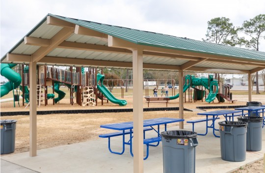 Paper Park features a 0.81 mile walking path, playground, a complete 18-hole “Timber Toss Disc Golf” course, and a 704 square feet covered pavilion with picnic tables. The park at the corner of Highway 29 and Muscogee Road is open to the public free of charge from sunrise to sunset. The parking area is off Mintz Lane at the southeast corner of the property.