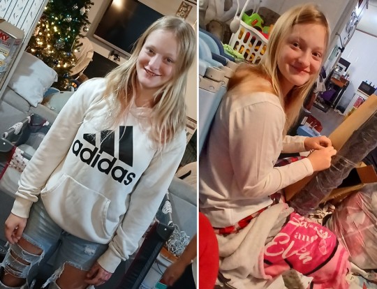 She was wearing a black hoodie, a grey shirt, grey sweatpants, and white Converse-style shoes. She is 110 pounds, 5 feet, 2 inches tall, and has strawberry blonde hair.