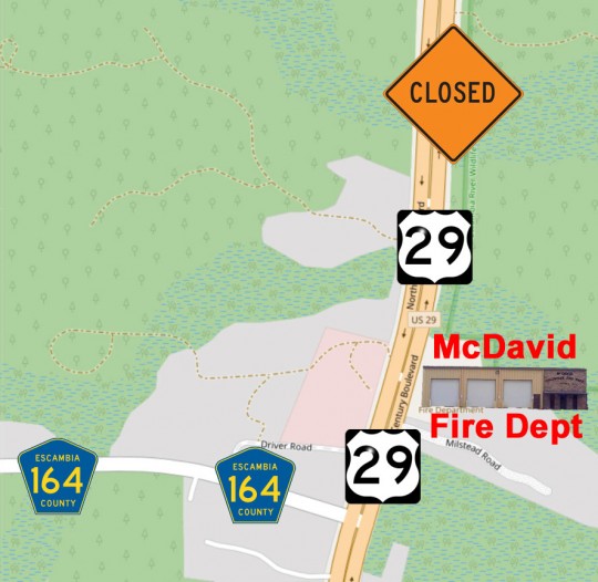 Highway 29 Northbound At Mitchell Creek Bridge In McDavid Closed Early Thursday Morning