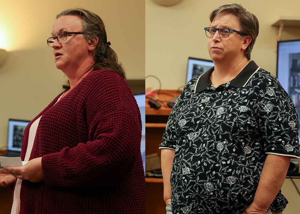 Pictured top: Century town council applicants Kathryn Fleming (left) and Lizbeth A. “Sparkie” Harrison (right) answer questions from the town council Tuesday night. NorthEscambia.com photos, click to enlarge.