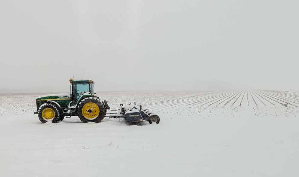 Pictured: A John Deere tractor sits in a snowy field in Davisville on January 21. NorthEscambia.com photo, click to enlarge.