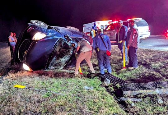 The driver of a southbound vehicle lost control on Highway 29 near Byrneville Road just before 6 p.m. and ran into the median. The vehicle struck a storm drain and overturned.