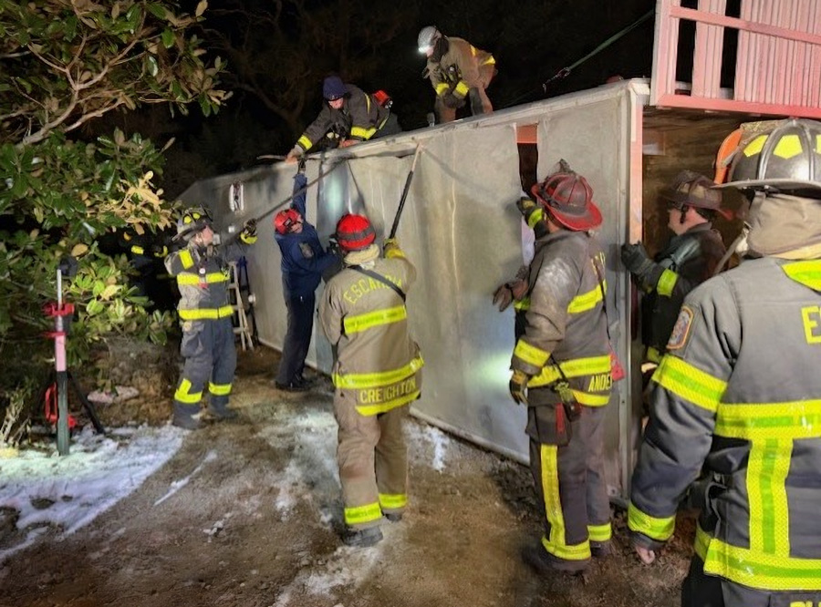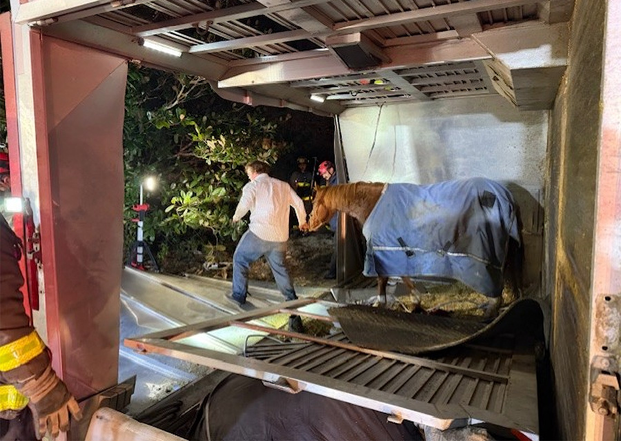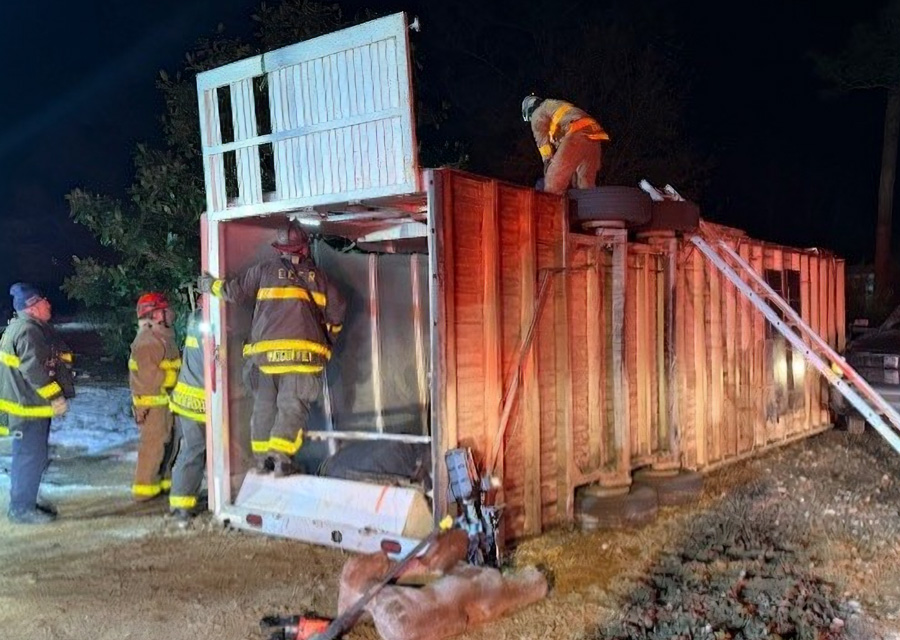 At 1:30 a.m. Saturday, Escambia County Fire Rescue responded to vehicle crash involving a large horse trailer that was overturned on its side with four horses inside the trailer. ECFR said two horses were quickly rescued, while firefighters cut a rail to free the leg of a third horse. A fourth horse passed away.