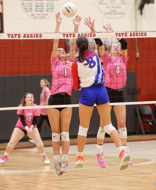 Pictured above and below: The October 2024 Dig Pink game for the Sideout Foundation at Tate High School. Pictured inset: The award banner received by the Lady Aggies. NorthEscambia.com photos, click to enlarge.