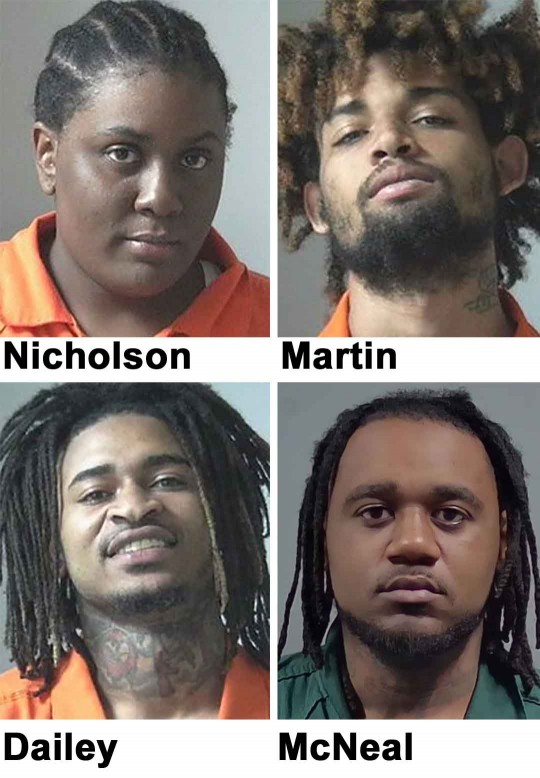 A fourth suspect, 27-year-old Scottie McNeal, is wanted on outstanding warrants for attempted murder and shooting into an occupied dwelling. Anyone with information on his whereabouts is asked to call their local law enforcement agency.