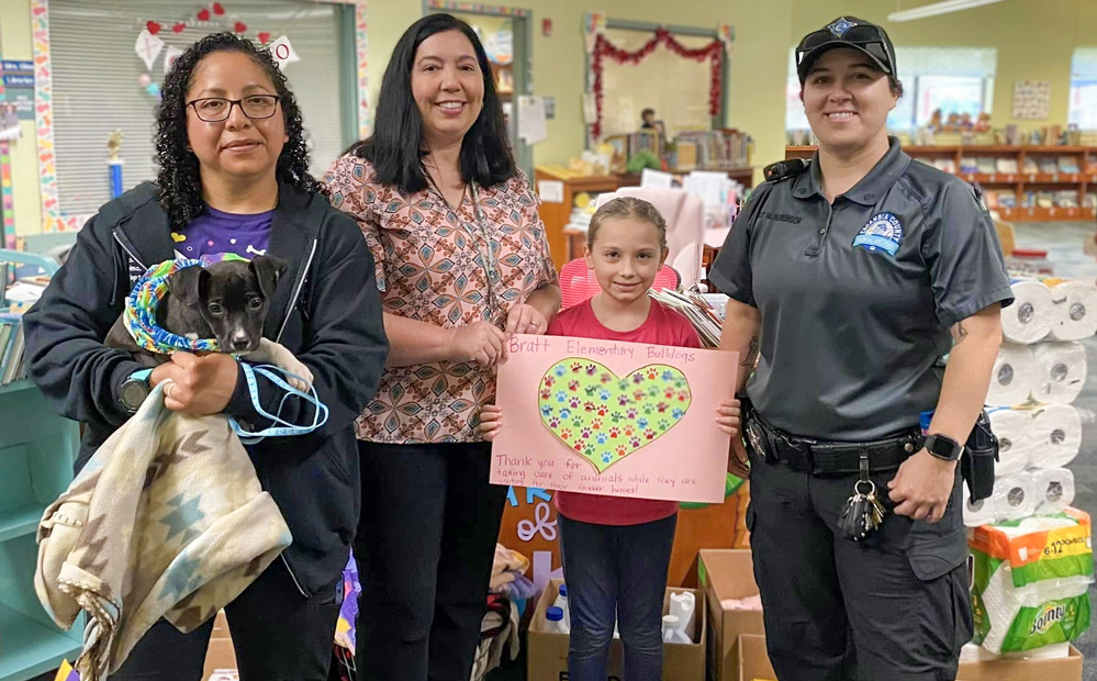To show their appreciation, Lead Animal Welfare Officer Sgt. Merideth Roberson and Animal Welfare Coordinator Gaby Negrete visited Bratt Elementary yesterday. They personally thanked the students for their generosity and shared ways the community can continue supporting local animals.