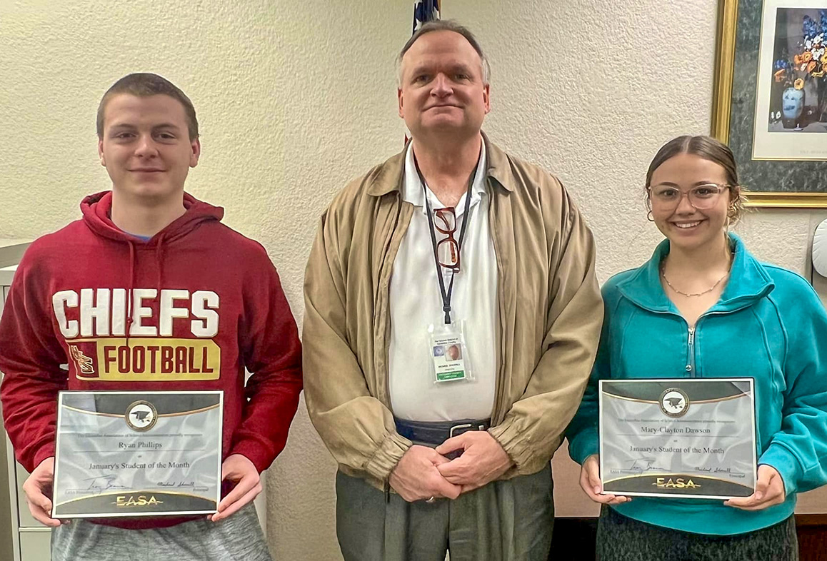 Northview High School recently named their Students of the Month for January. They are Ryan Phillips and Mary-Clayton Dawson, pictured with Principal Michael Sherrill. Photo for NorthEscambia.com, click to enlarge.