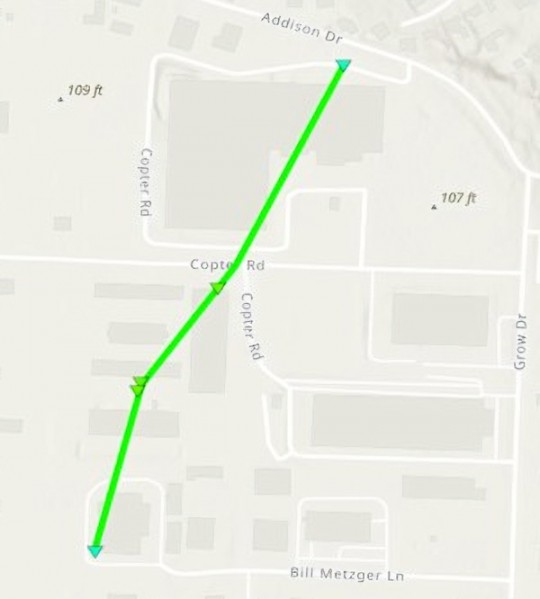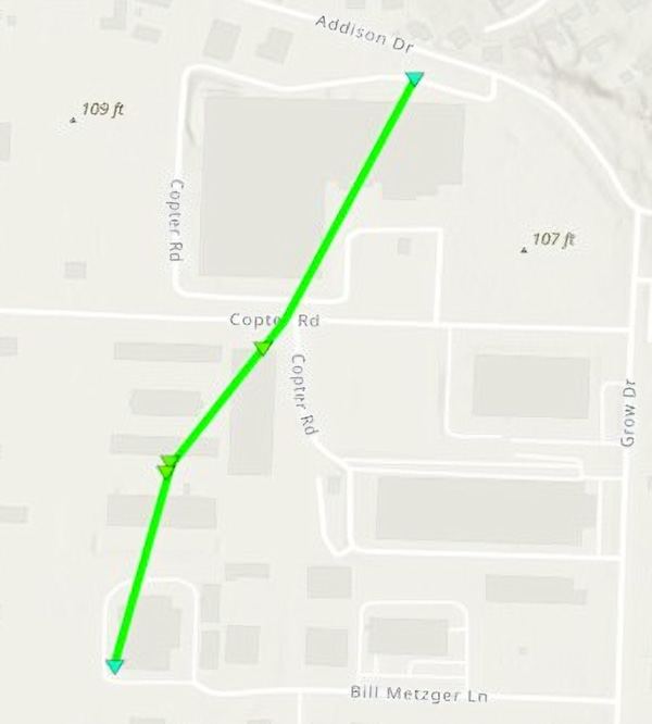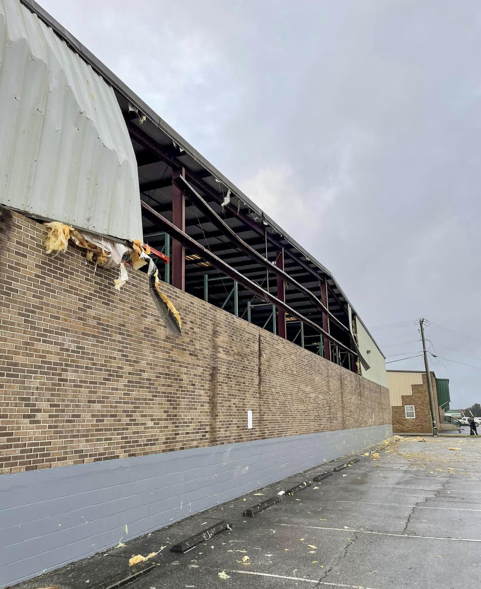 The NWS said the tornado first touched down about a quarter mile south of Copter Road and just east of Paul Star Drive. At the starting point, several boats were pushed into fencing with a few boats overturned. The tornado moved northeast across an industrial complex, causing significant damage to some metal roofs. Metal side paneling and doors were also blown out on a few buildings. Three minor injuries were reported in this area. The tornado quickly weakened as it moved north of Copter Rd and lifted near Addison Drive with only some small tree debris located.
