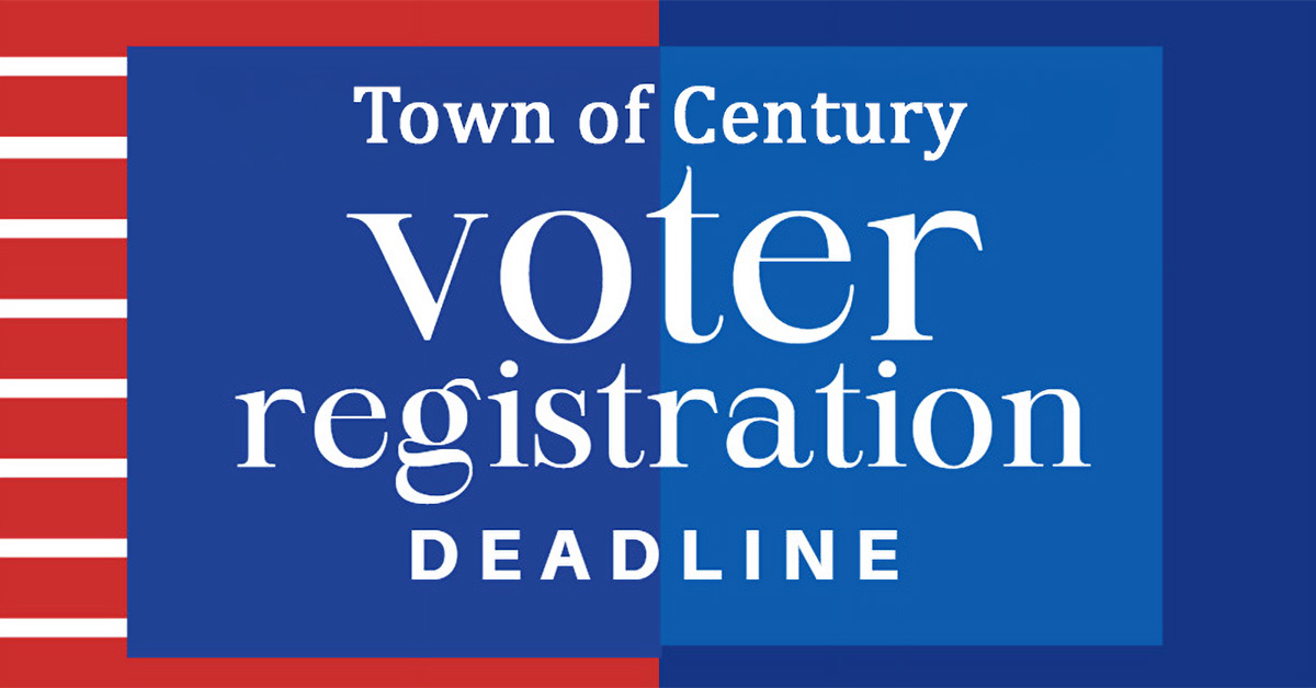 Today is the final day for Town of Century residents to register to vote in the March 18 special primary election for a vacant Seat 4 on the Century Town Council.