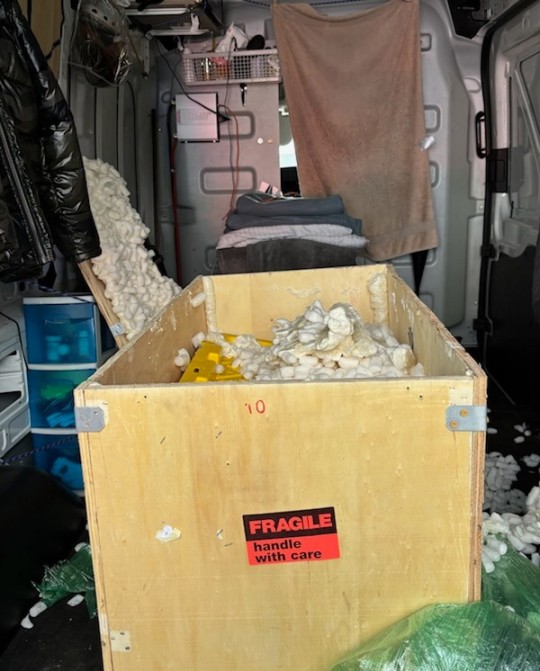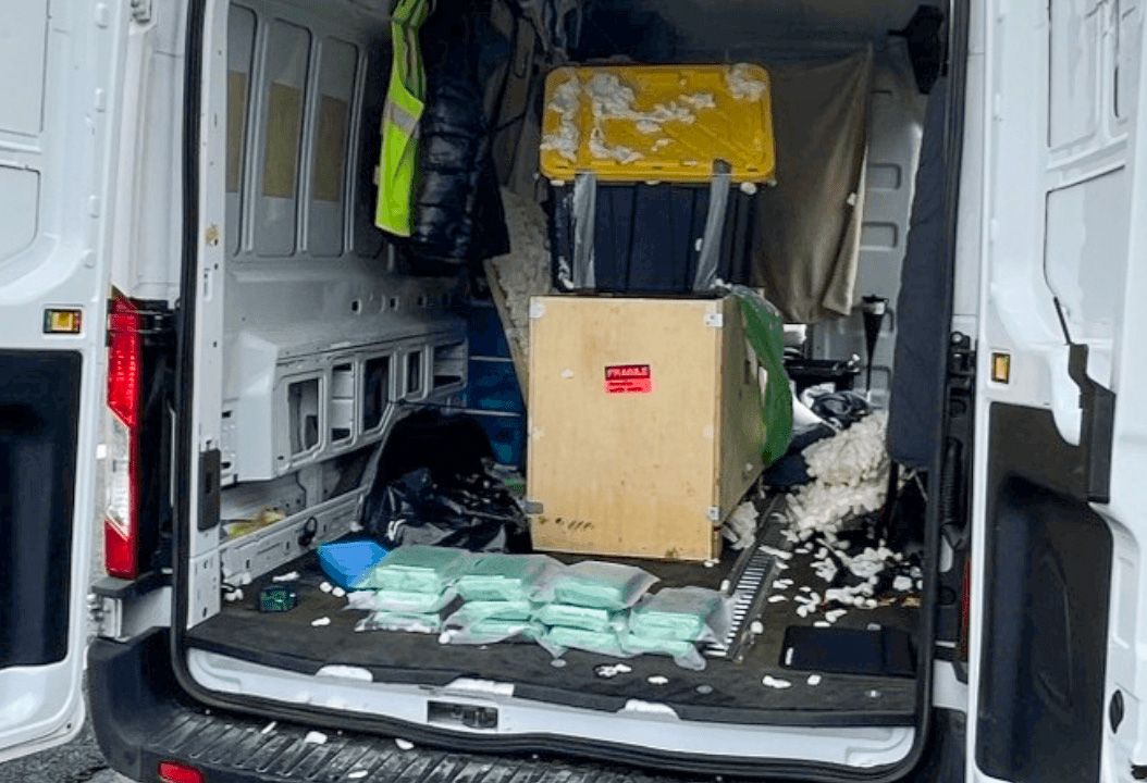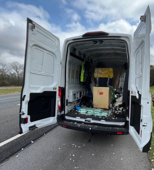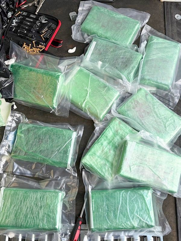A large cargo van was observed bypassing an FDACS agricultural interdiction station, prompting officers to initiate a traffic stop. Upon inspection, officers discovered a crate holding a large plastic box filled with spray foam that had not yet solidified. Upon further investigation, officers found 11 bricks of cocaine – with a total weight of 29.2 pounds – concealed beneath the foam. The crate had been picked up from a storage unit in El Paso, Texas, and was destined for a location in South Florida.