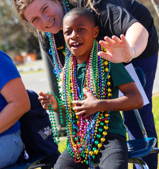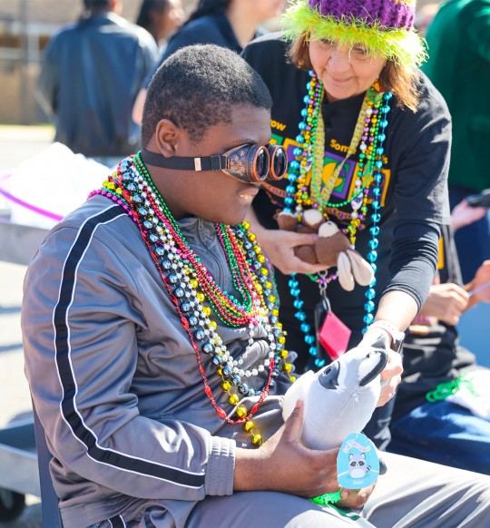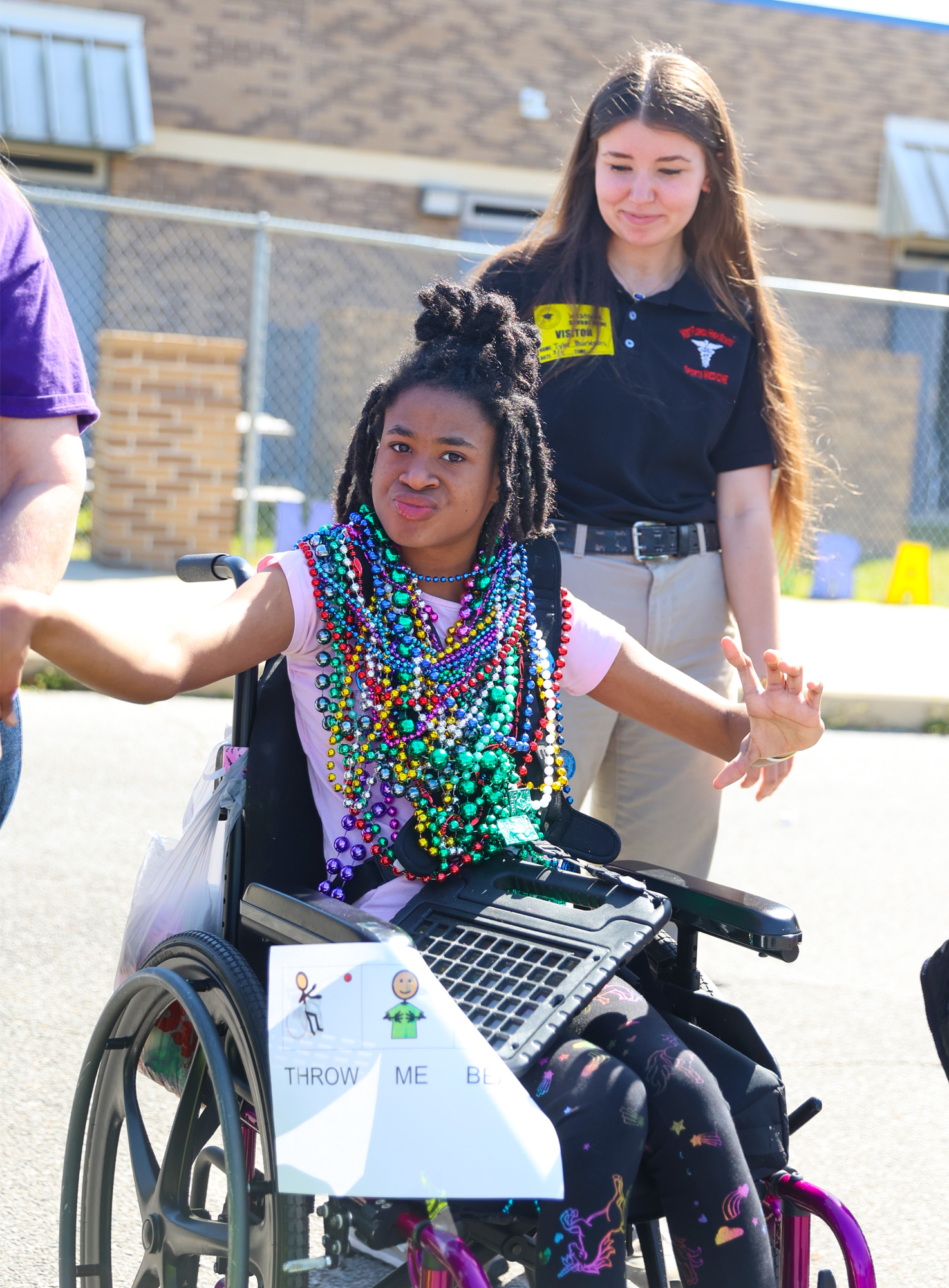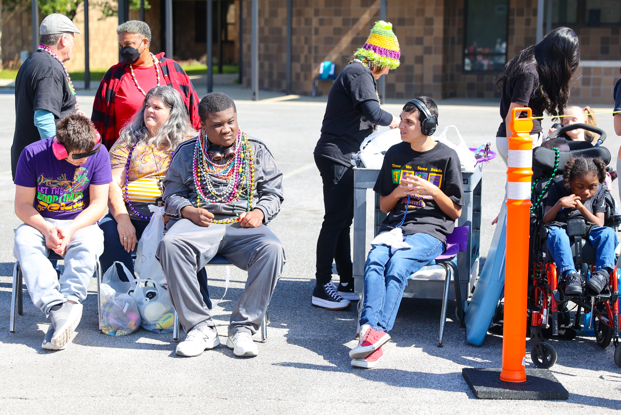 With plenty of beads, trinkets and smiles, the parade rolled through the school parking lot for students with sensory issues that might not otherwise be able to attend a regular Mardi Gras parade.