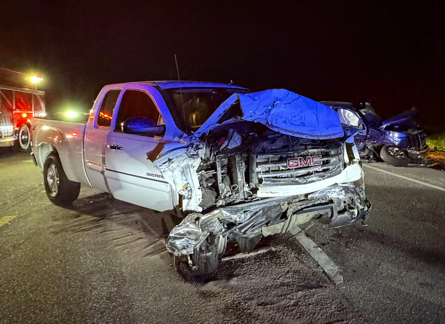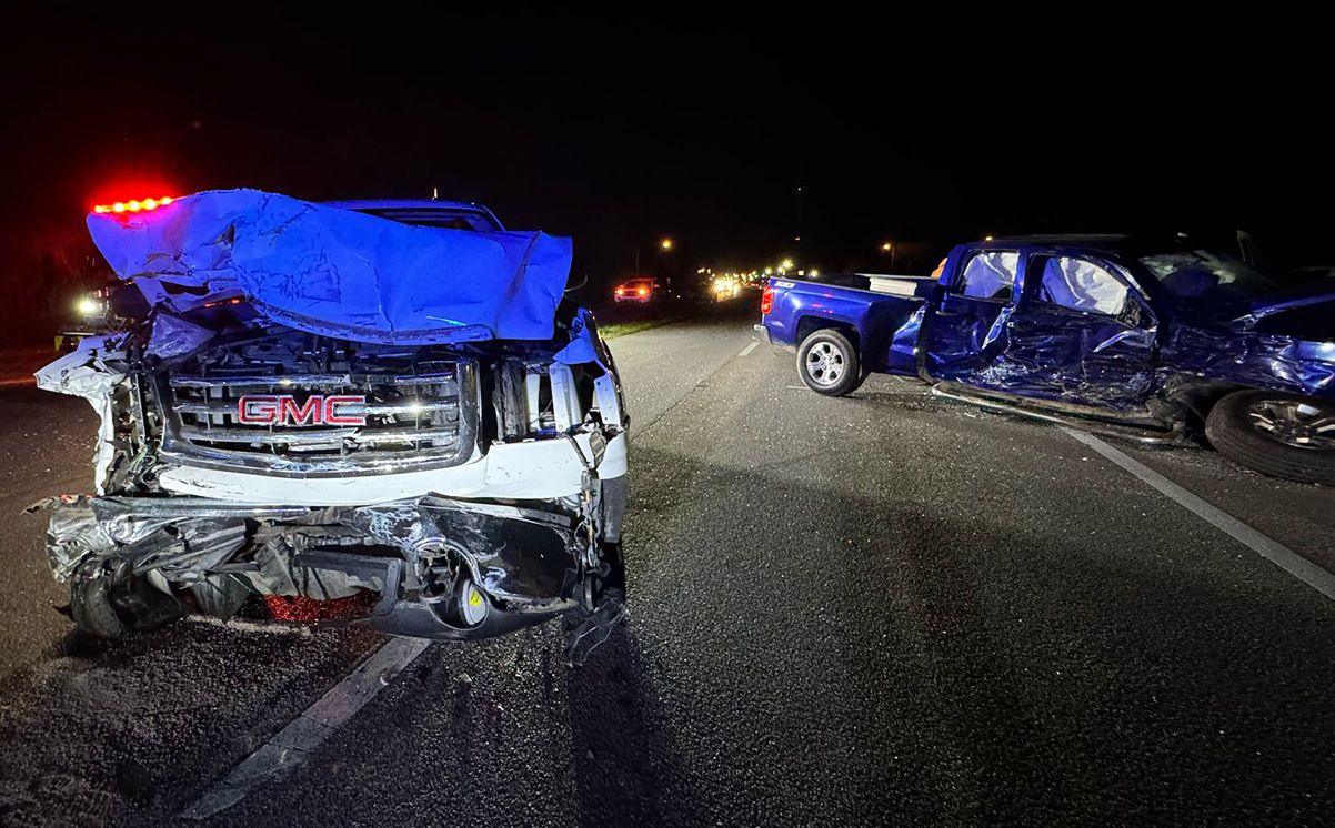 Two pickup trucks collided about 8:10 p.m. An update on the conditions of those involved was not available.