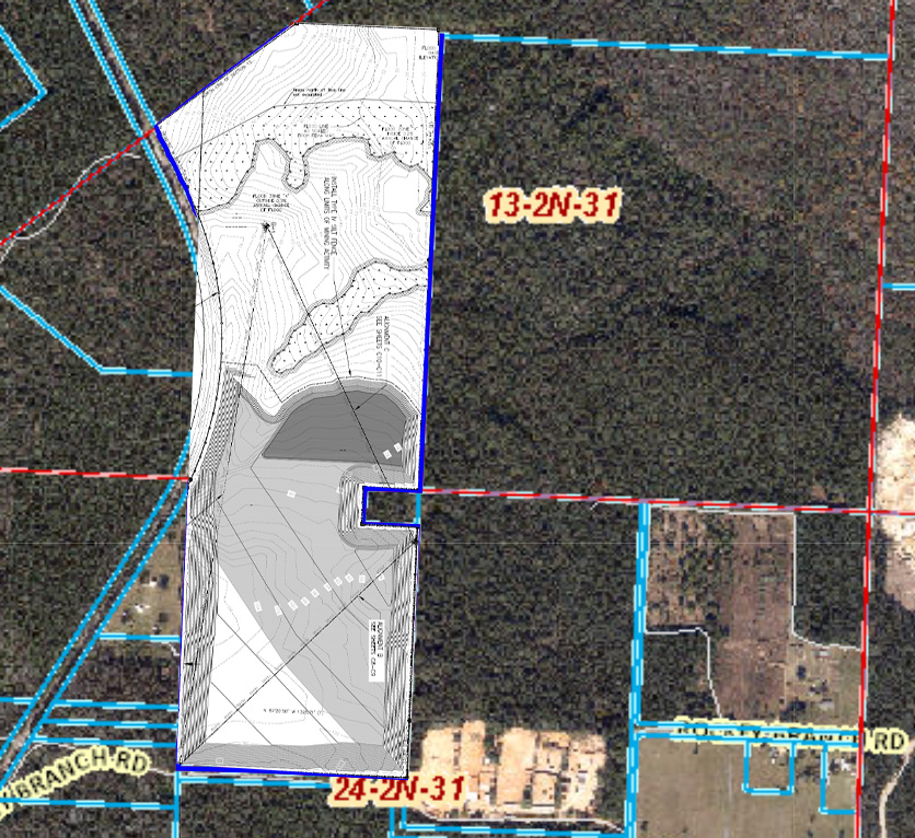 A 127-acre borrow pit is being proposed on Rocky Branch Road, adjacent to the Escambia River Gun Club.