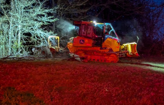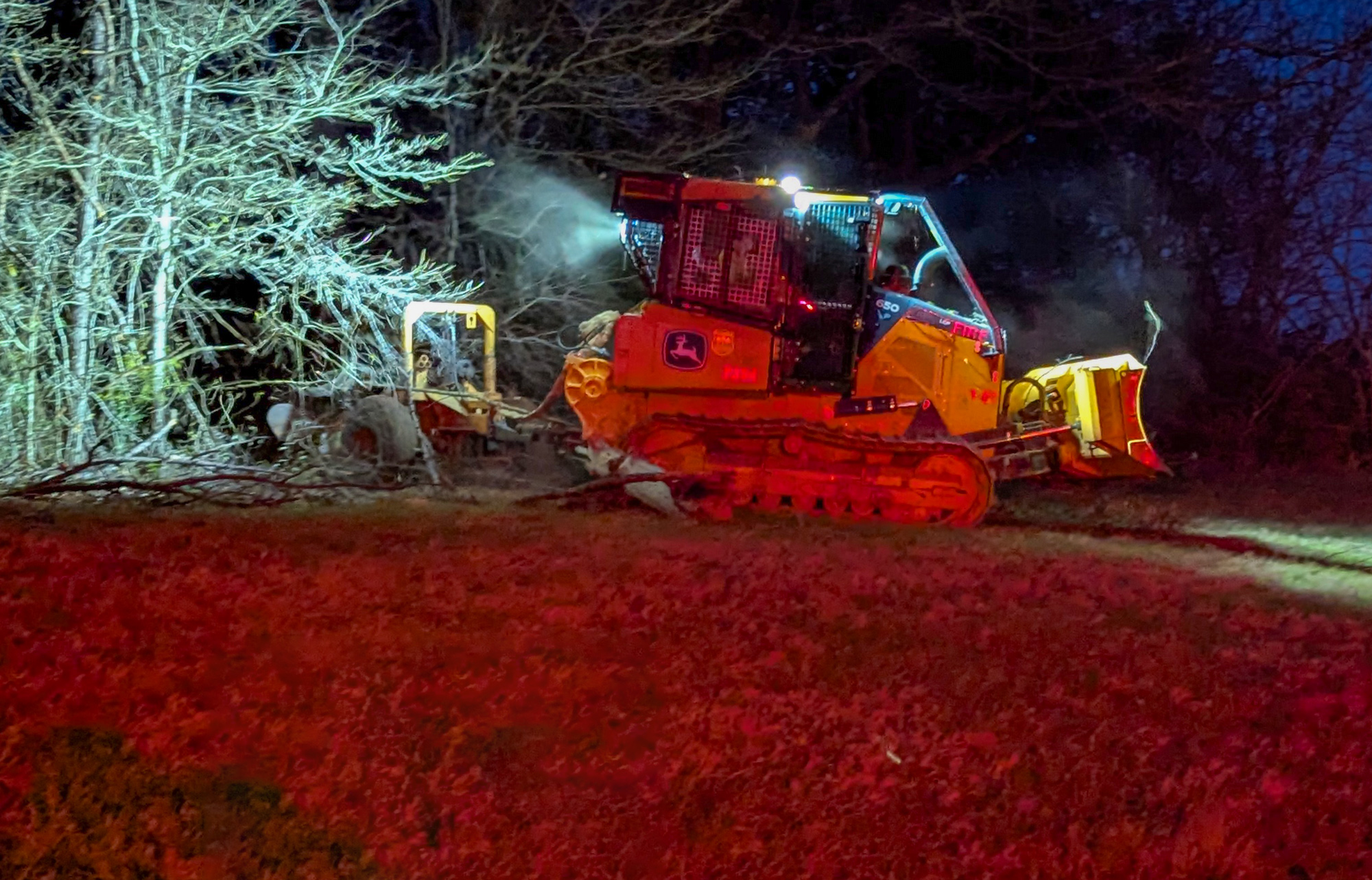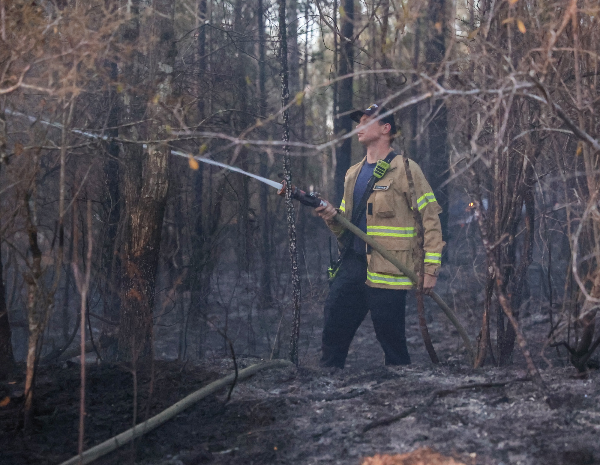The fire, with flames that reached the treetops, was in a wooded area north of West Highway 4 near Dortch Road. There were no injuries, and no structural damage reported.