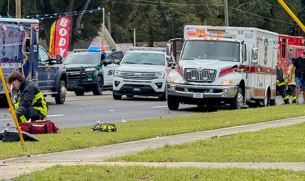 Escambia County EMS, Escambia Fire Rescue and the Escambia County Sheriff’s Office also responded to the crash, which completely shut down Pine Forest Road.