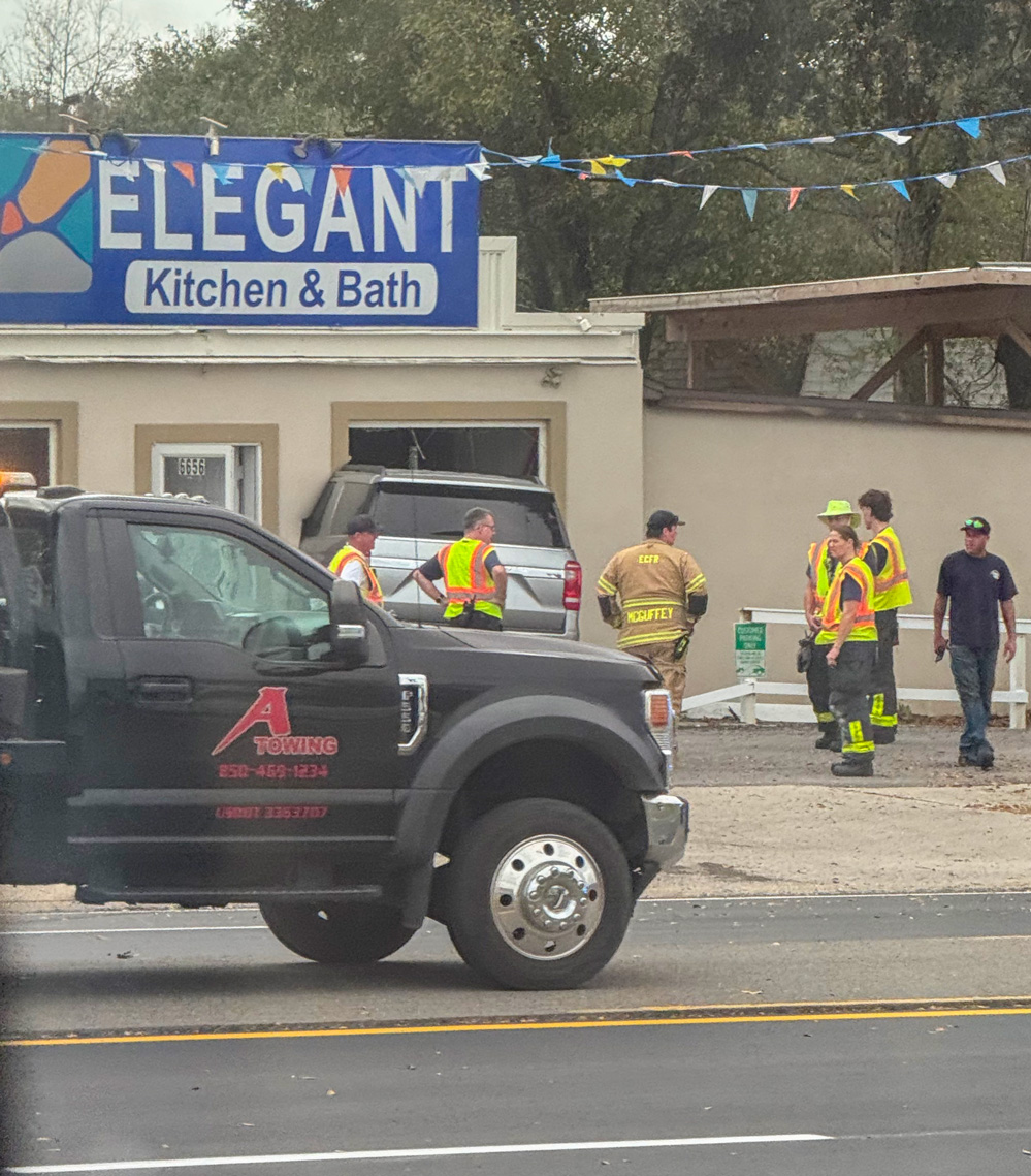 In a report released Monday, the Florida Highway Patrol said a passenger car driven by a 39-year-old Massachusetts woman ran a stop sign and pulled into the path of a SUV driven by a 29-year-old Cantonment man. The SUV then collided with a nearby business, Elegant Kitchen & Bath.