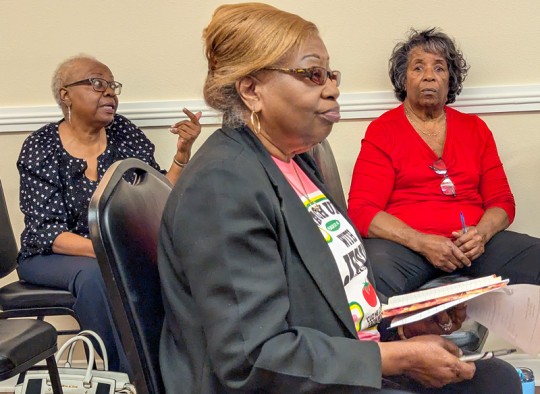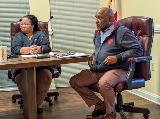Three members of the public (pictured above) and council member elect John Bass attended Tuesday night’s public hearing and offered input on potential projects.