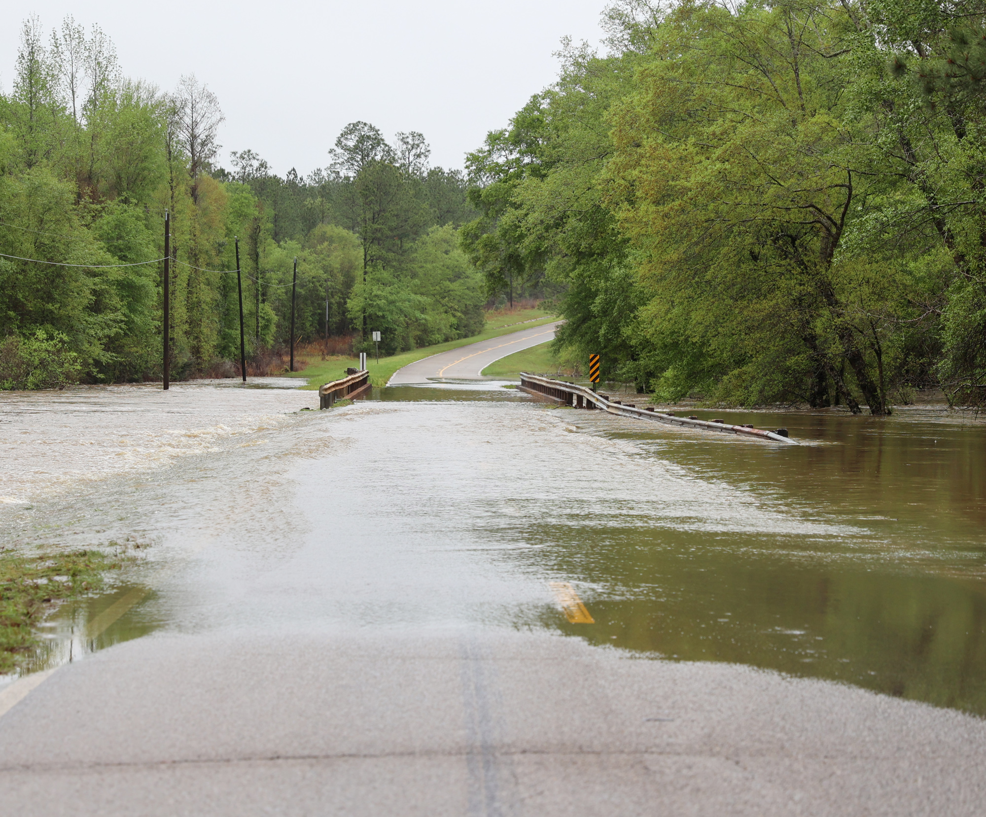 Brushy Creek has overflowed the bridges on Arthur Brown Road, Occie Phillips Road and Pineville Road. All the roadways are closed at the creek. Readers tell us that portions of dirt Pineville Road were washed out.
