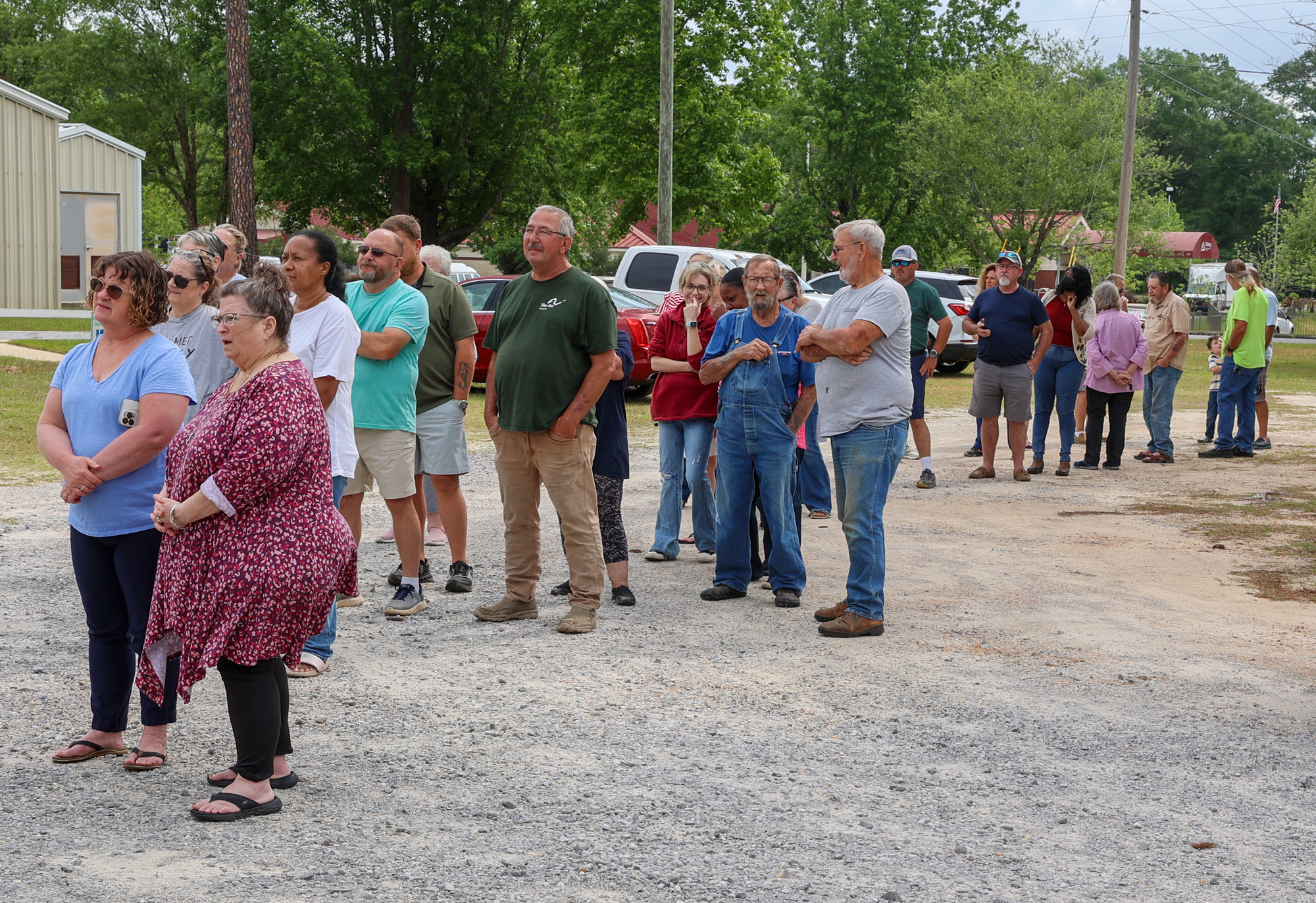 A line formed before the 10 o’clock start time at the community center on West Highway 4.