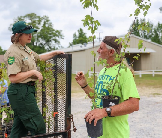 Over 125 tree were available — including sycamore, red maple, Chickasaw plum and common persimmon in one gallon containers — with a limit if two trees per person.