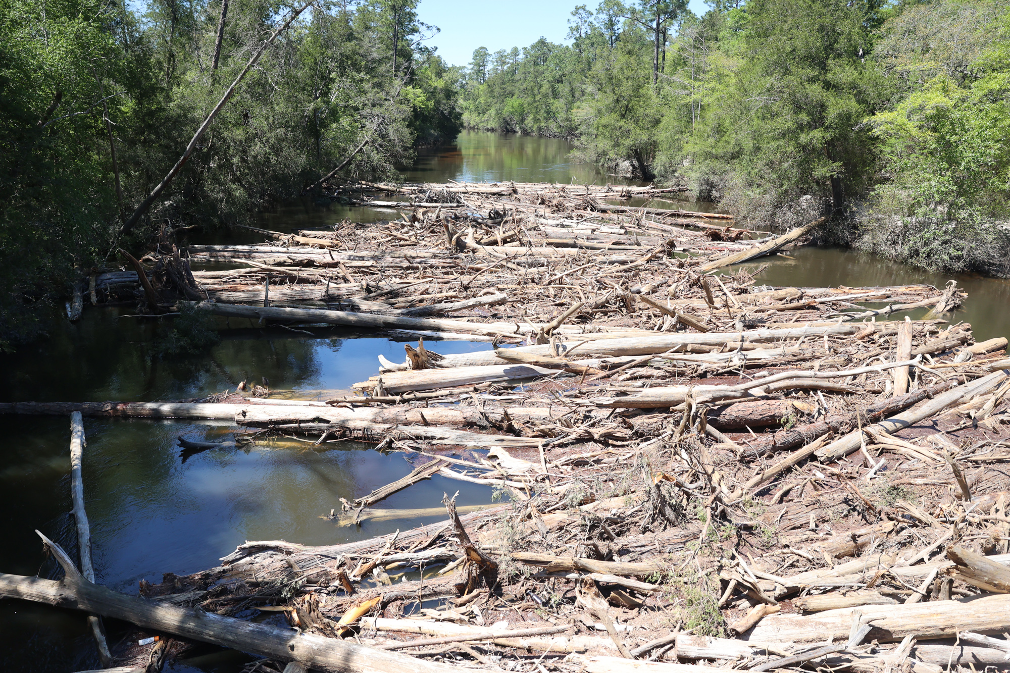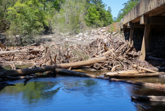 A foot or more of rain April 6-7 led to flooding on the Perdido River at Barrineau Park. The flooded river left behind a larger than normal logjam against the Barrineau Park Road bridge.