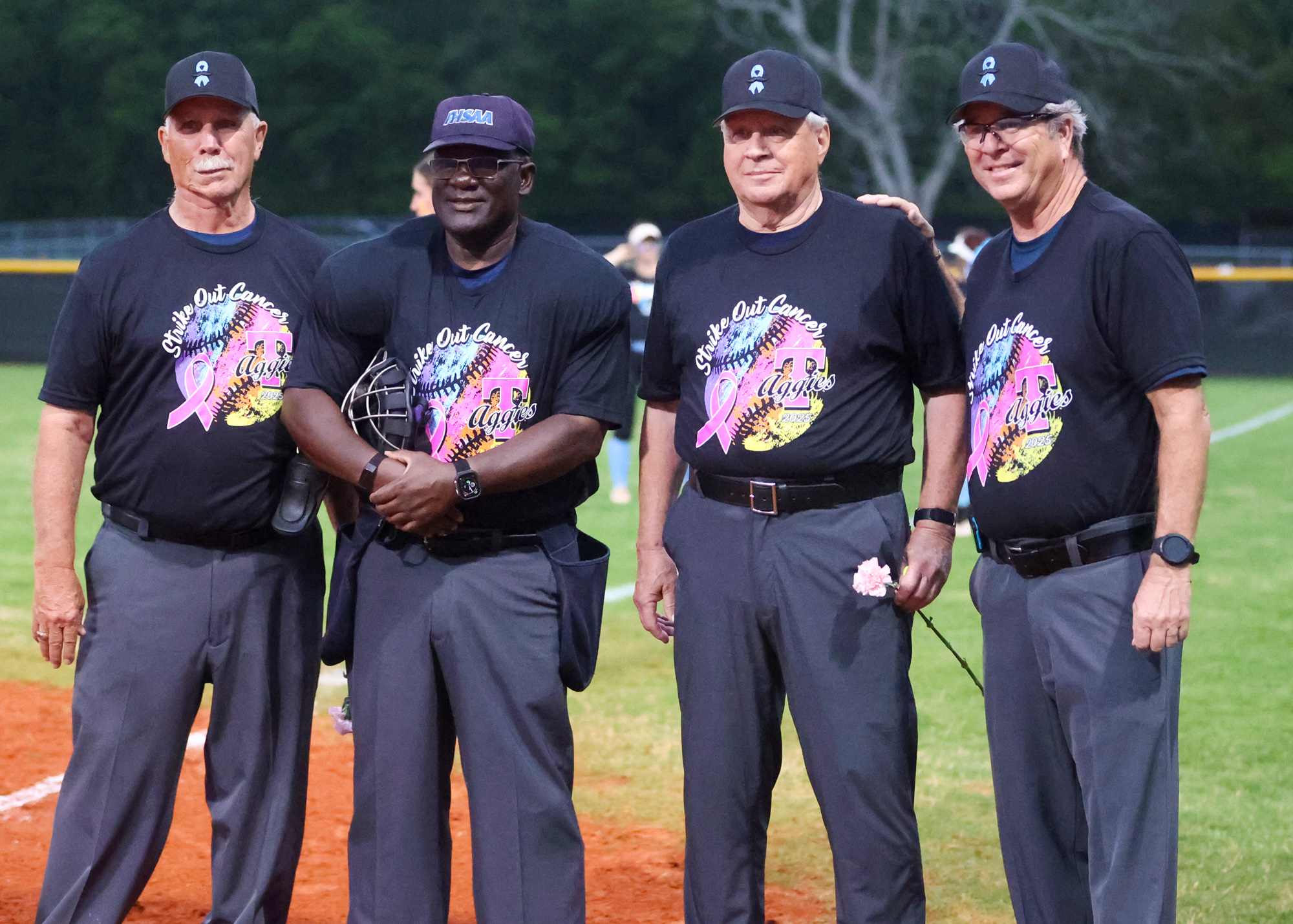 Everything about the game is donated to cancer research. Admission is by donations. There are raffles, concession sales and auctions. Friday night, a chocolate cake topped $200, and a one-of-kind handmade blanket made from 15 years of Aggie Classic t-shirts went for over $1,000. The Escambia County Sheriff’s deputies working the game donate their time.