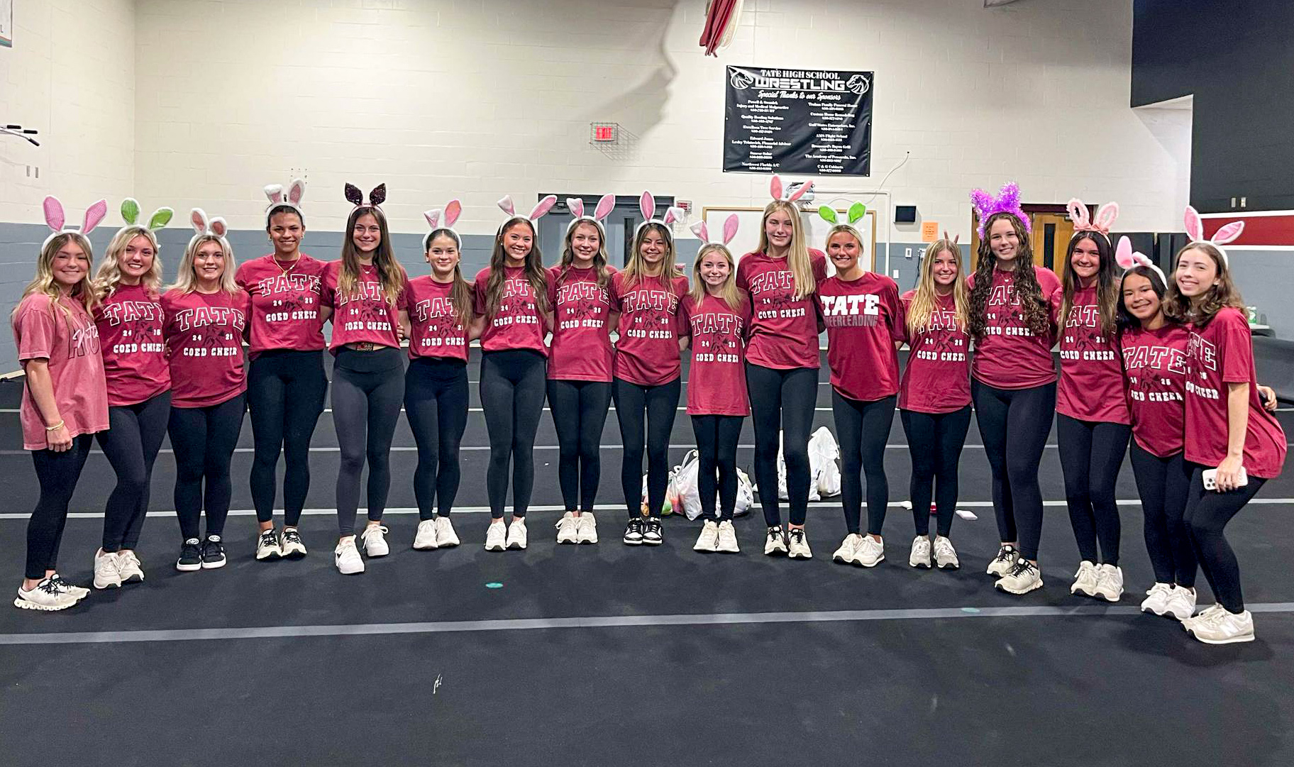 Tate Cheer held an “Egg My Yard” fundraiser. For donations starting at $20, the cheerleaders hid pre-filled eggs Saturday night in yards north of Nine Mile Road. Proceeds will benefit the Tate cheer program.