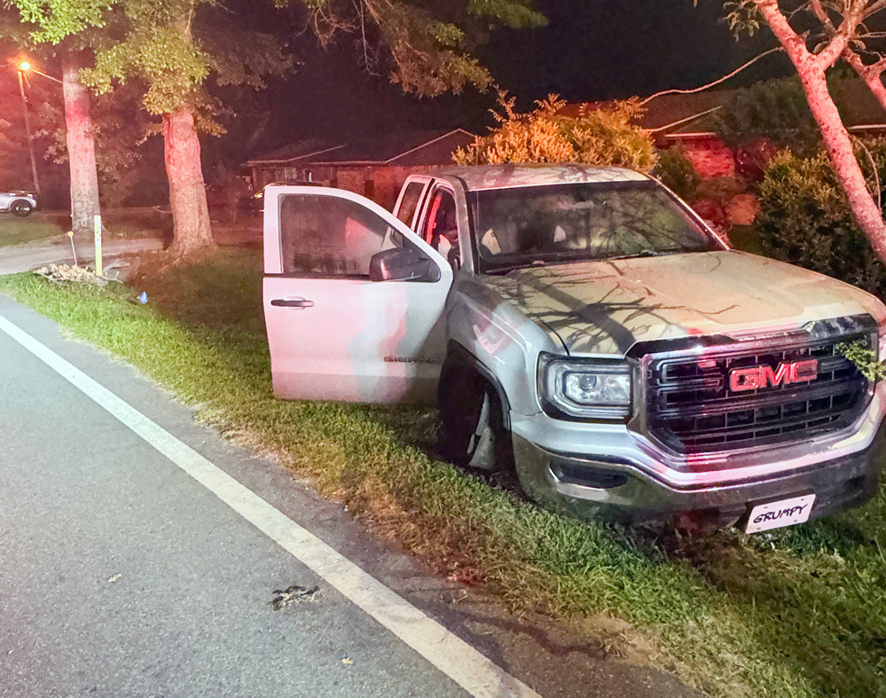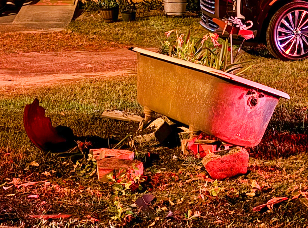 The pickup truck driver left the roadway in the 700 block of William Ditch Road, hit an old claw foot bathtub that was being used as a decorative planter in a front yard, hit a tree and came to rest in a ditch several houses away.
