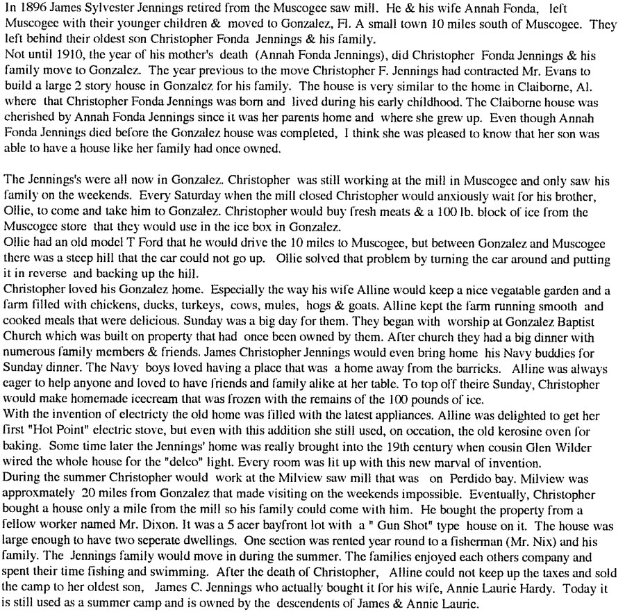 For an additional submitted history of the Jennings family on Gonzalez, click here.