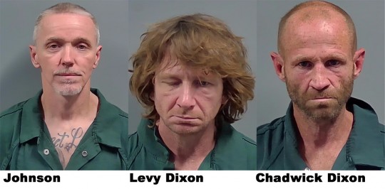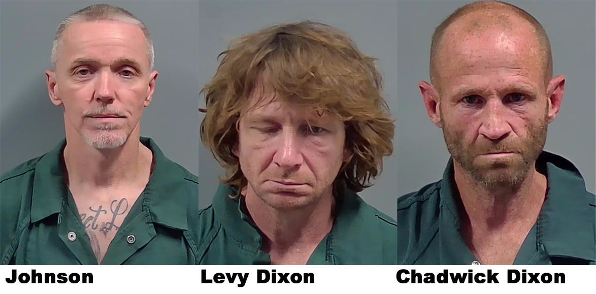 Frank Lee Johnson, 48, and brothers Chadwick Clay Dixon, 45, and Levy Bryan Dixon, 44, were each charged with first degree felony stealing copper or other metal interfering with communications utility.