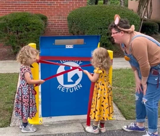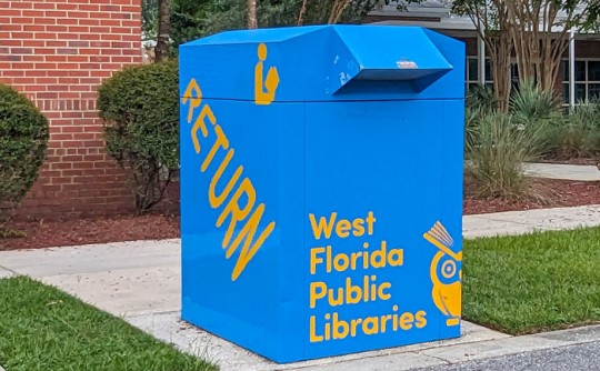 The ribbon has been “cut” on a new book drop at the Molino Library.