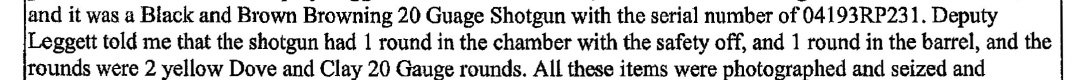 After Jarman was detained, deputies entered the residence and located a Browning 20 Gauge Shotgun allegedly used in the incident. The shotgun was found to have one round in the chamber with the safety off and one round in the barrel, ECSO said.