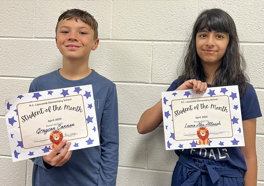 Lipscomb Elementary School has named their April Students of the Month. They are Grayson Cannon and Leena Abu Alloush. Photo for NorthEscambia.com, click to enlarge.