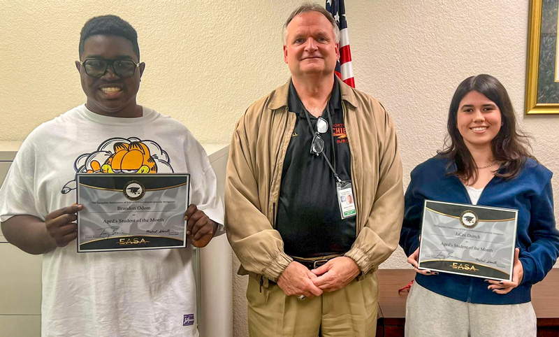Northview High School recently named their April Students of the Month. They are Brandon Odom and JaCee Dortch, pictured with Principal Michael Sherrill. Photo for NorthEscambia.com, click to enlarge.