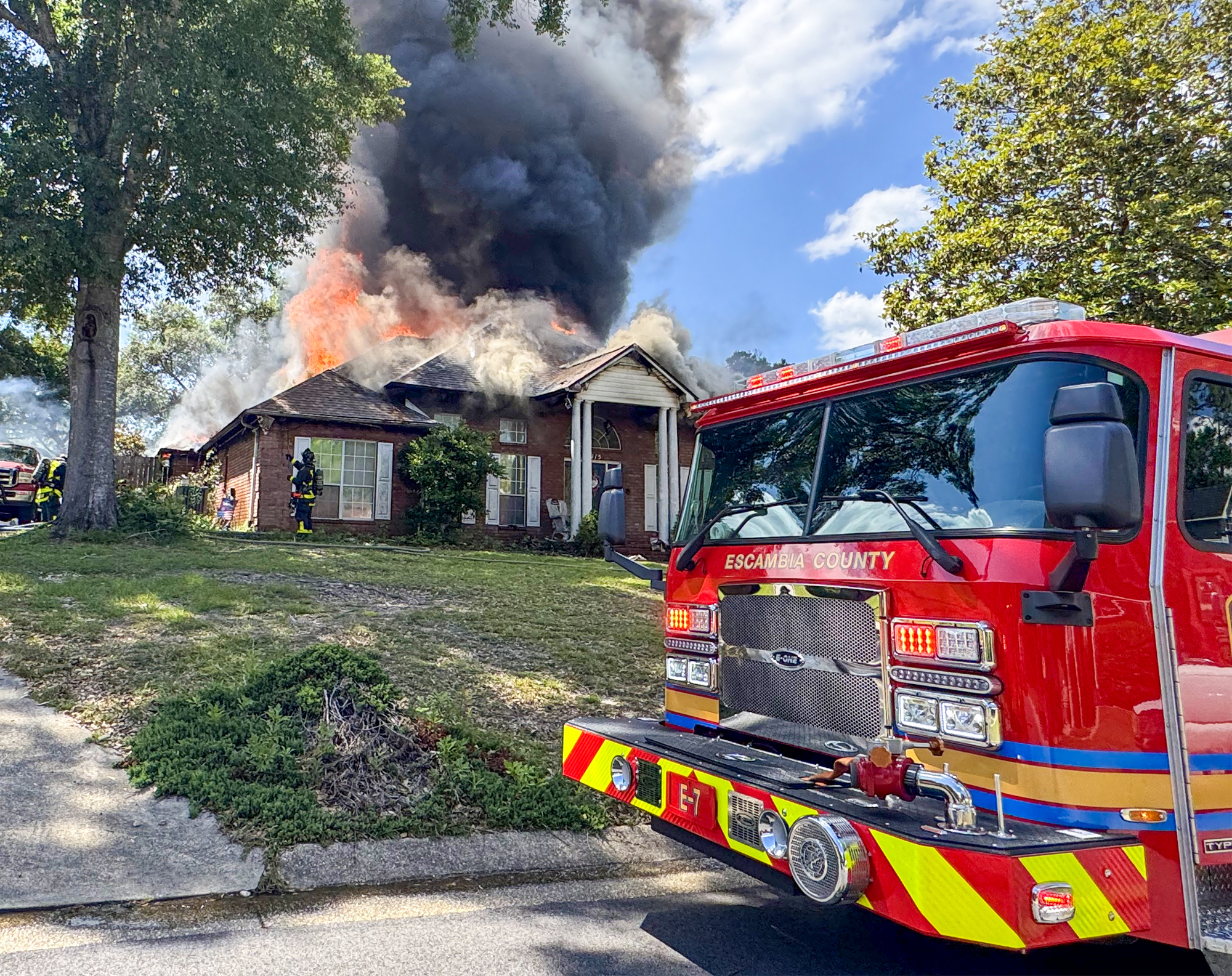 Escambia County Fire Rescue believes the fire started in the attic of the 3,450 square foot home in the 1400 block of Glenmore Drive, just north of East Kingsfield Road. The fire quickly spread through the home and into a nearby camper.