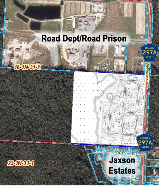 According to documents filed Friday with the Escambia County Development Review Committee (DRC) by developer Thomas Henry, the subdivision would be on 38 acres sandwiched between the Road Prison to the north and the existing Jackson Estates subdivision to the south.