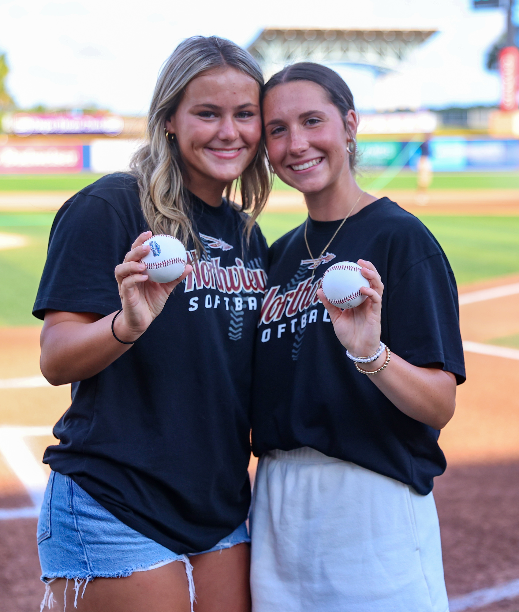 Lady Chief Bailey Burkette and Mikayla McAnally threw out ceremonial first pitches for the Wahoos.